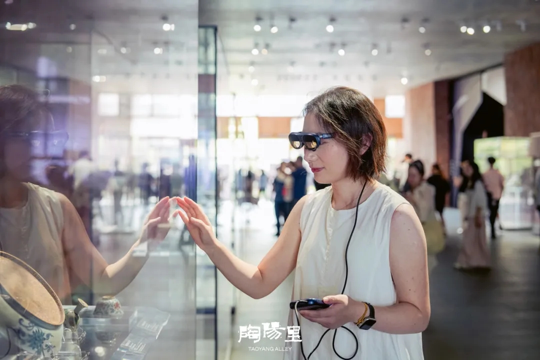 观众只需要带上智能AR眼镜,就能看到虚拟内容与真实世界的融合,多彩鲜活的画面和可爱灵动的讲解,让御窑博物馆展柜里的文物和知识“活”了起来。观众还可以在虚拟空间中与文物互动,了解御窑瓷器的结构、纹饰、历史等等。