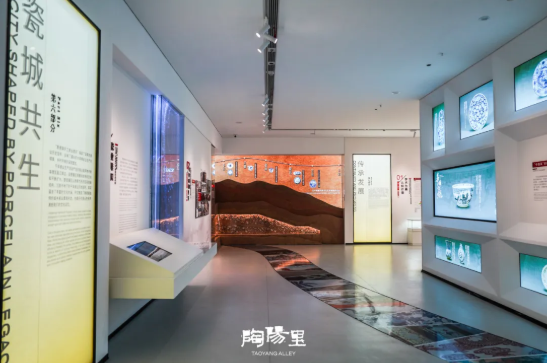 景德镇瓷业文化遗产保护中心一层的“景德镇手工瓷业遗存”展览藏着“魔法墙”。展厅入口处视频采用先进“弧幕投影技术”,景德镇的制瓷原料藏在哪,镇区里的瓷业生产中心怎么分布,原料怎么运到作坊、作坊又怎么连成产业链,都看得明明白白。