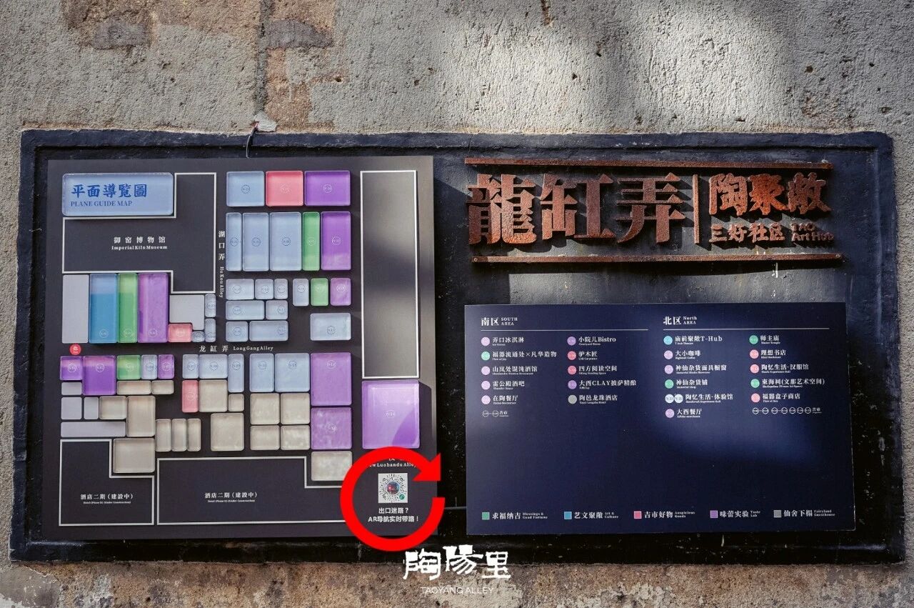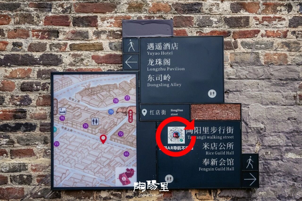 微信扫描陶阳里旅游区内路牌、电子屏上的【出口迷路?AR导航实时带路!】二维码,或微信搜索“陶阳里导览”,即可进入小程序。