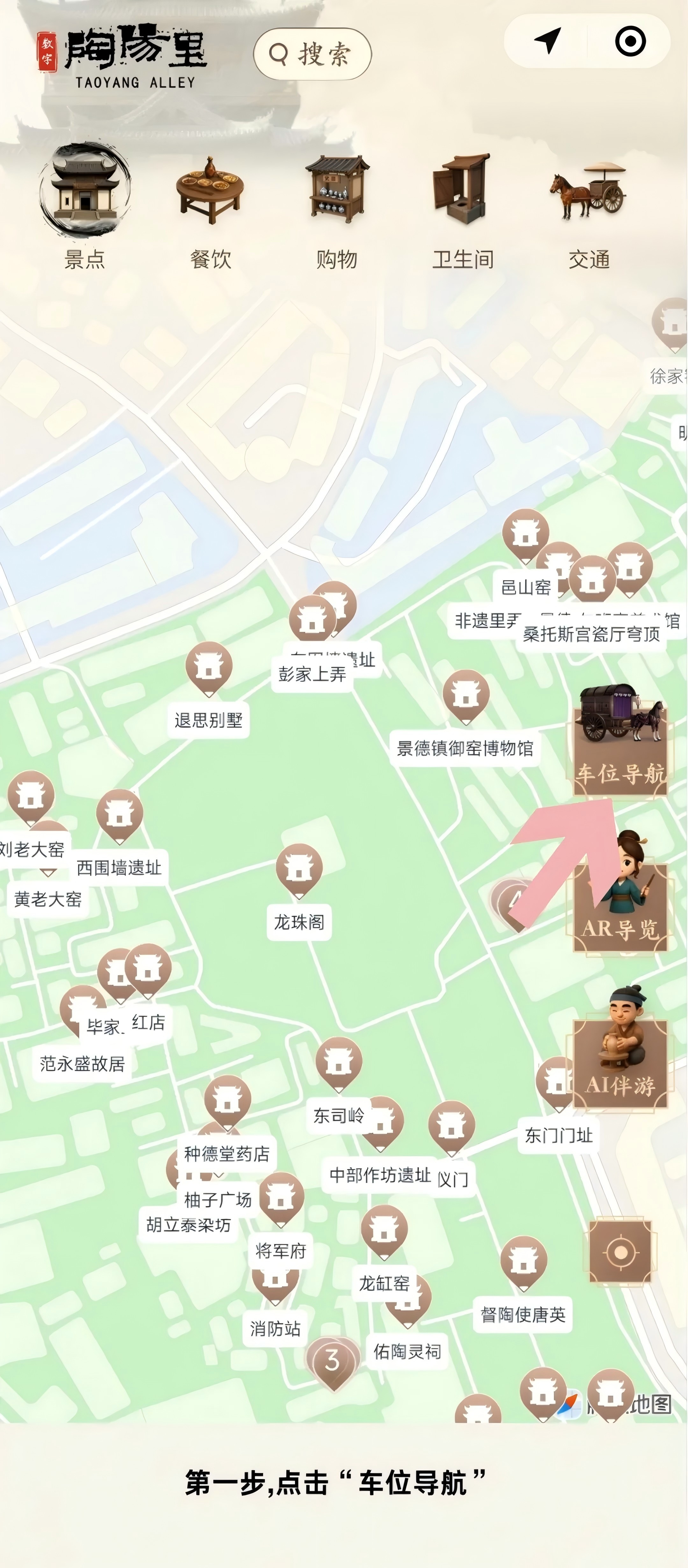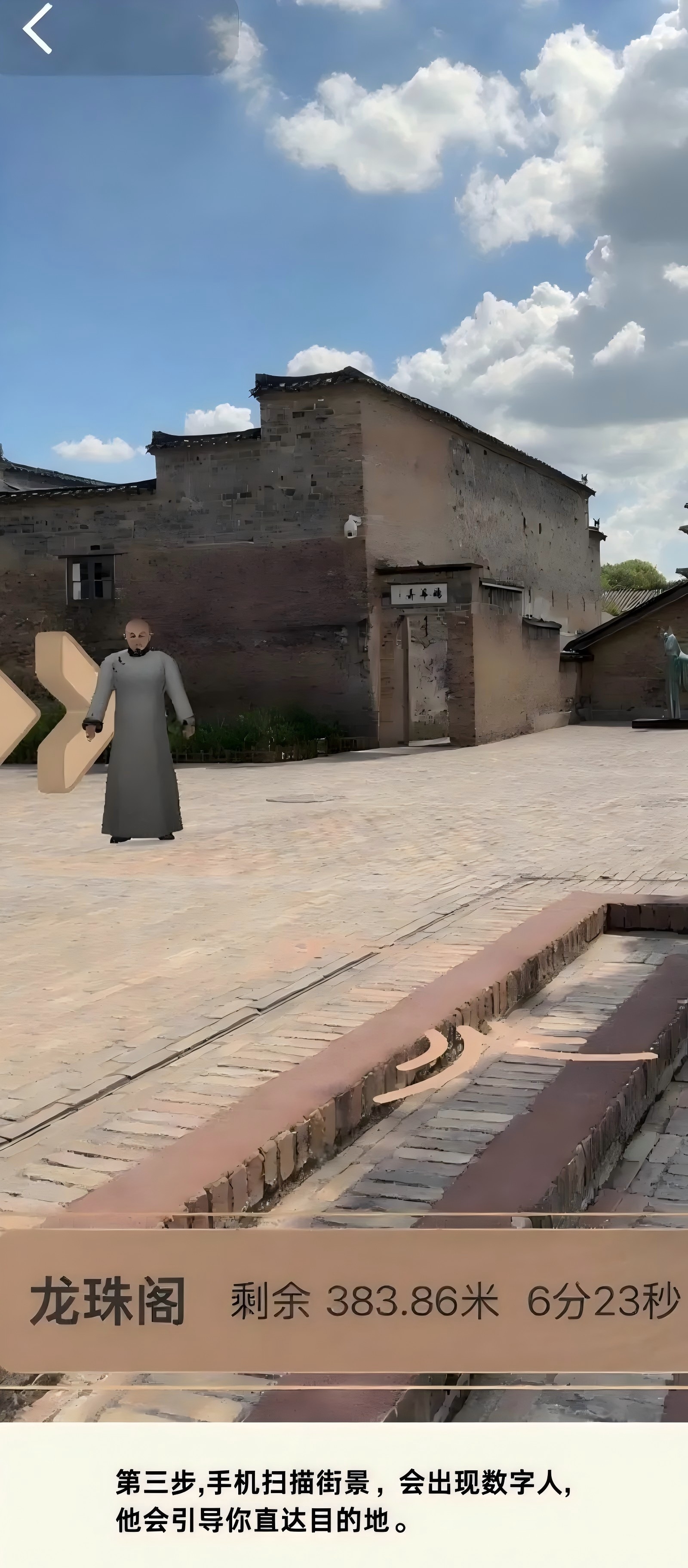 3 点击“AR导览”→扫描街景→点击景点→“开启导航”