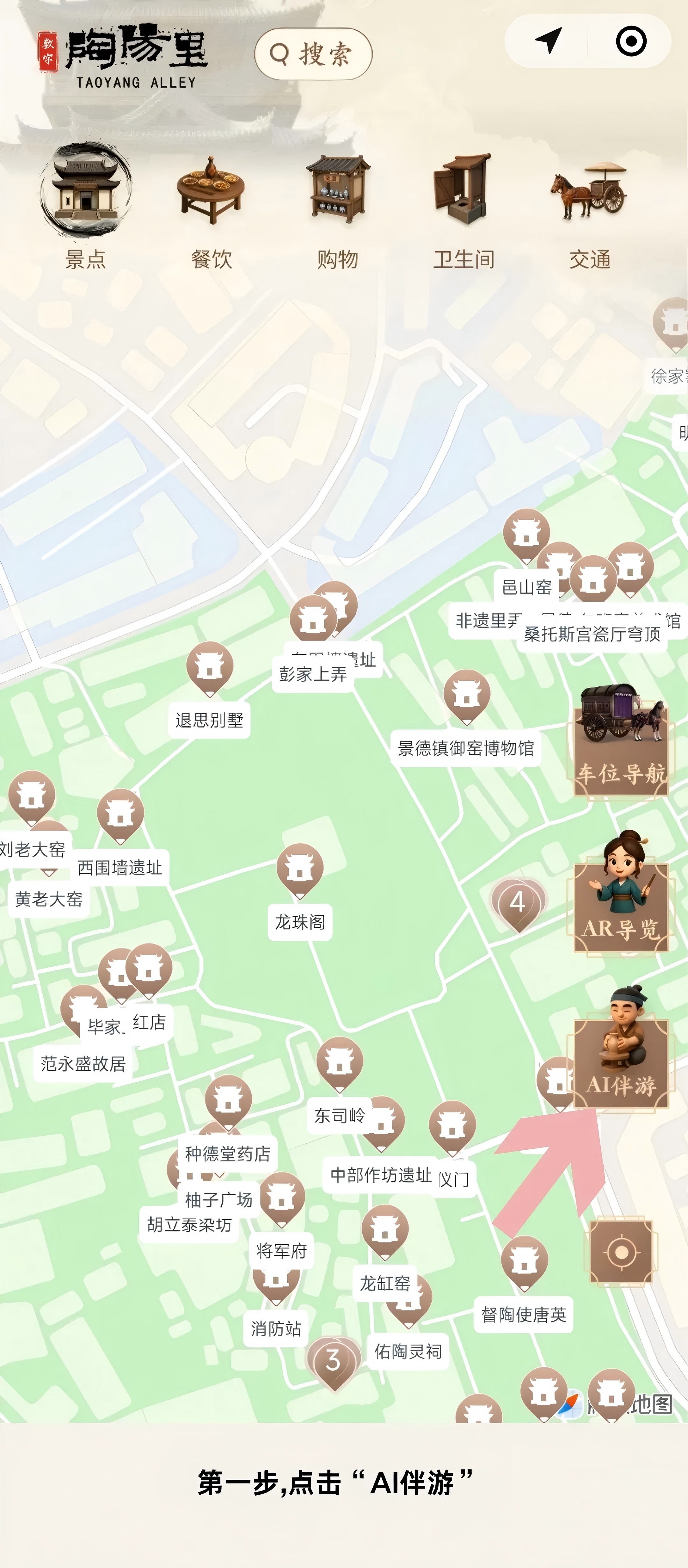 4 点击“AI伴游”→输入地点→“开启导航”