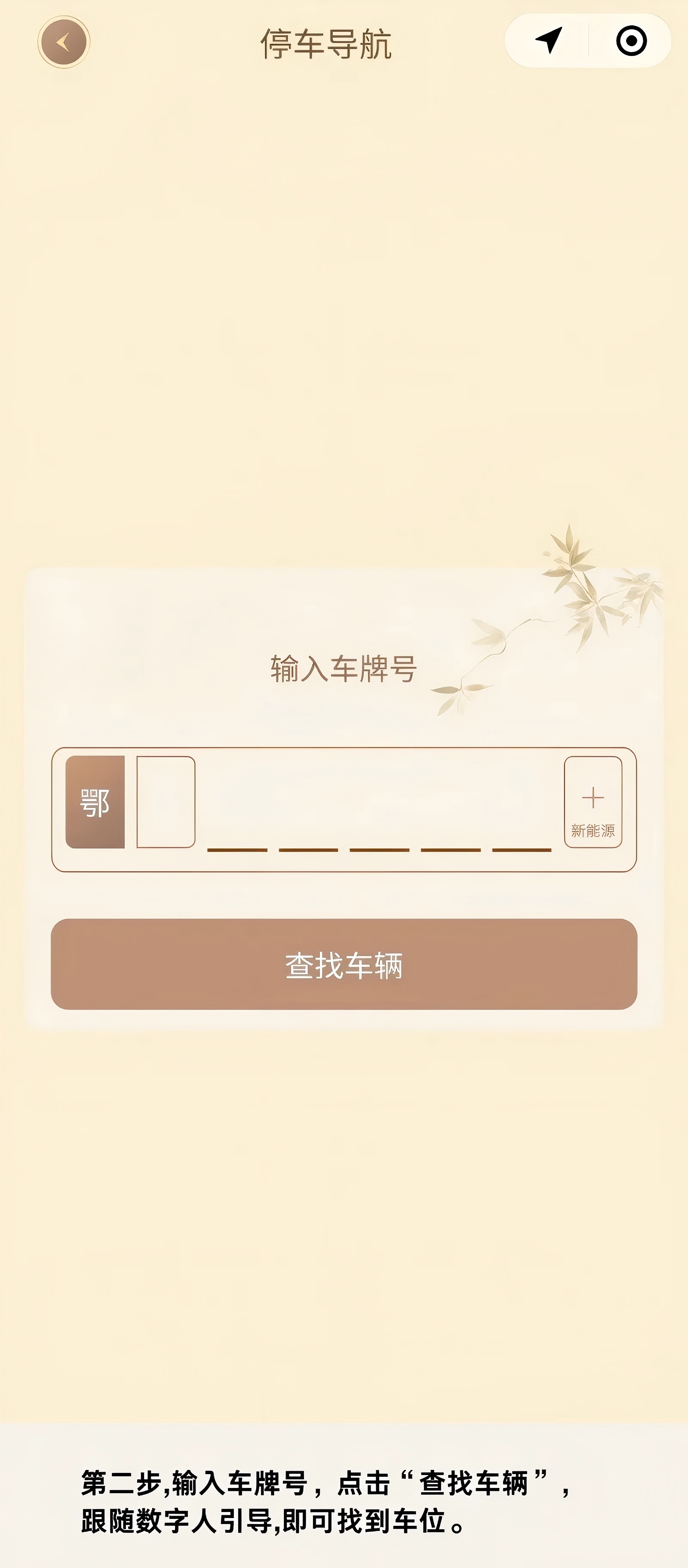 点击屏幕右侧“车位导航”,输入车牌,系统将结合手机相机的街景识别,自带定位功能及AR技术,通过屏幕中数字人的引导,带你前往车辆所在位置。