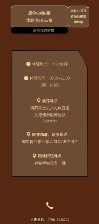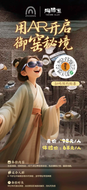 来景德镇必逛的御密博物馆,「瓷国明珠]「御窑史话」两大常设展再升级,观众只需要戴上智能AR眼镜,即可看到虚拟内容与真实世界的融合,多彩鲜活的画面和可爱灵动的讲解,让御窑博物馆展柜里的文物和知识“活”了起来。