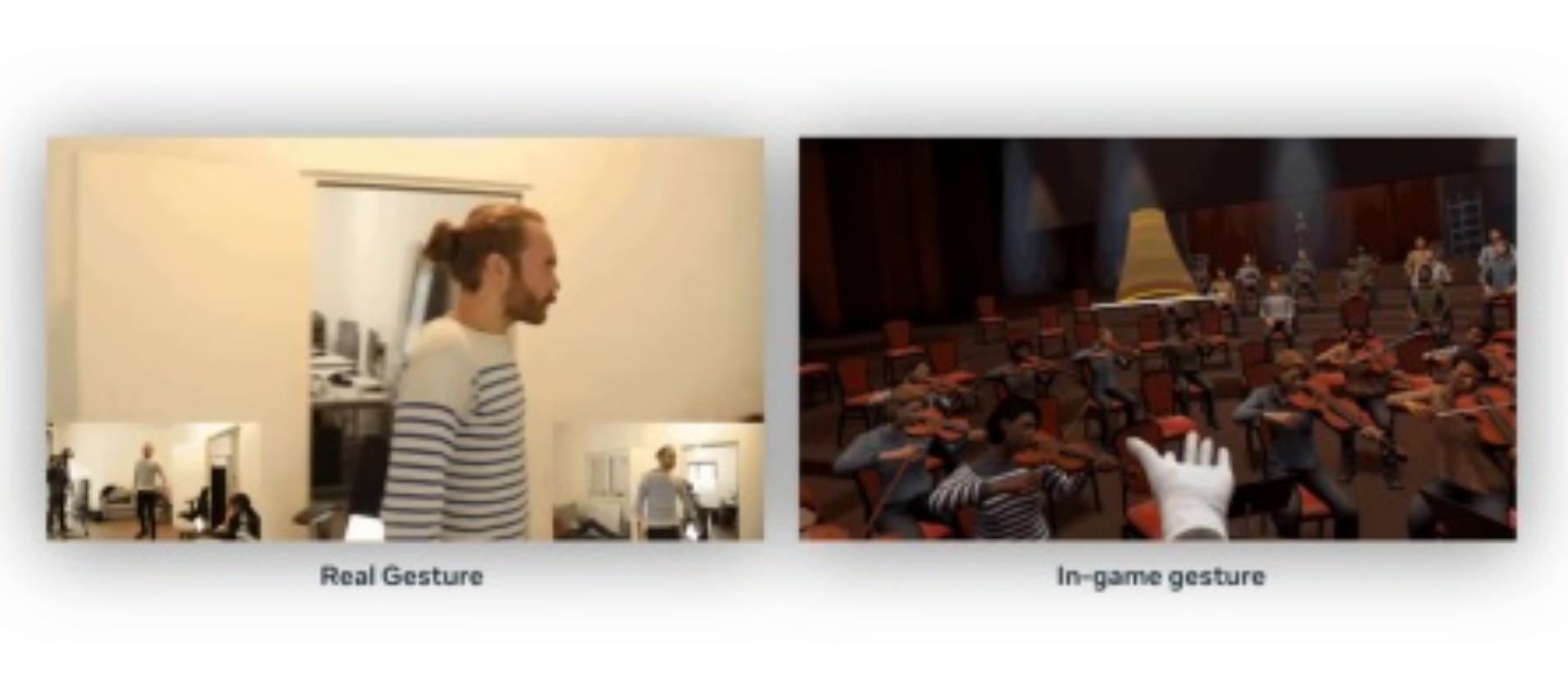 Samuel Metters通过Double Jack的V 管弦乐队指挥游戏《Maestro》将这个框架付诸实践。手部追踪非常适合这种体验,因为它恰如其分地融入了奇幻模拟情境。指挥家不会拿着运动手柄,而《Maestro》正是利用了这种真实性。