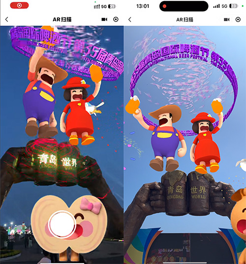 在筹备第35届青岛国际啤酒节的时候,我们就在琢磨能不能整点真有用的,能不能让游客觉得手机是能看到另一个世界的透视镜,把原本看不见的数字内容,实打实地装进啤酒城的物理空间里。最后我们联合仁甲看见、白日梦科技,做了一个全天候都能玩,不管谁来都能上手的AR啤酒节。