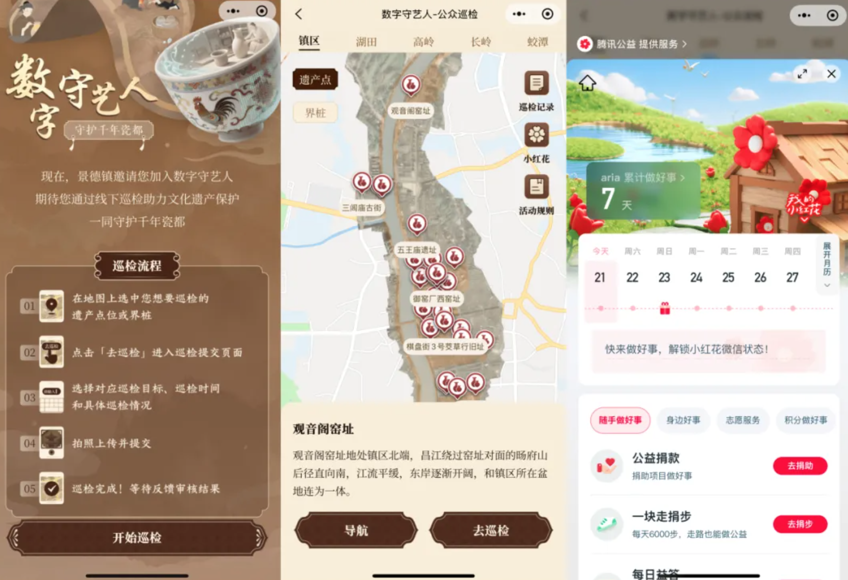 通过“数字守艺人”功能,你的游览可升华为守护行动。拍摄巡检、提交表单,即可积累公益认证,让个人的参观转化为对文化遗产的切实关注与贡献。