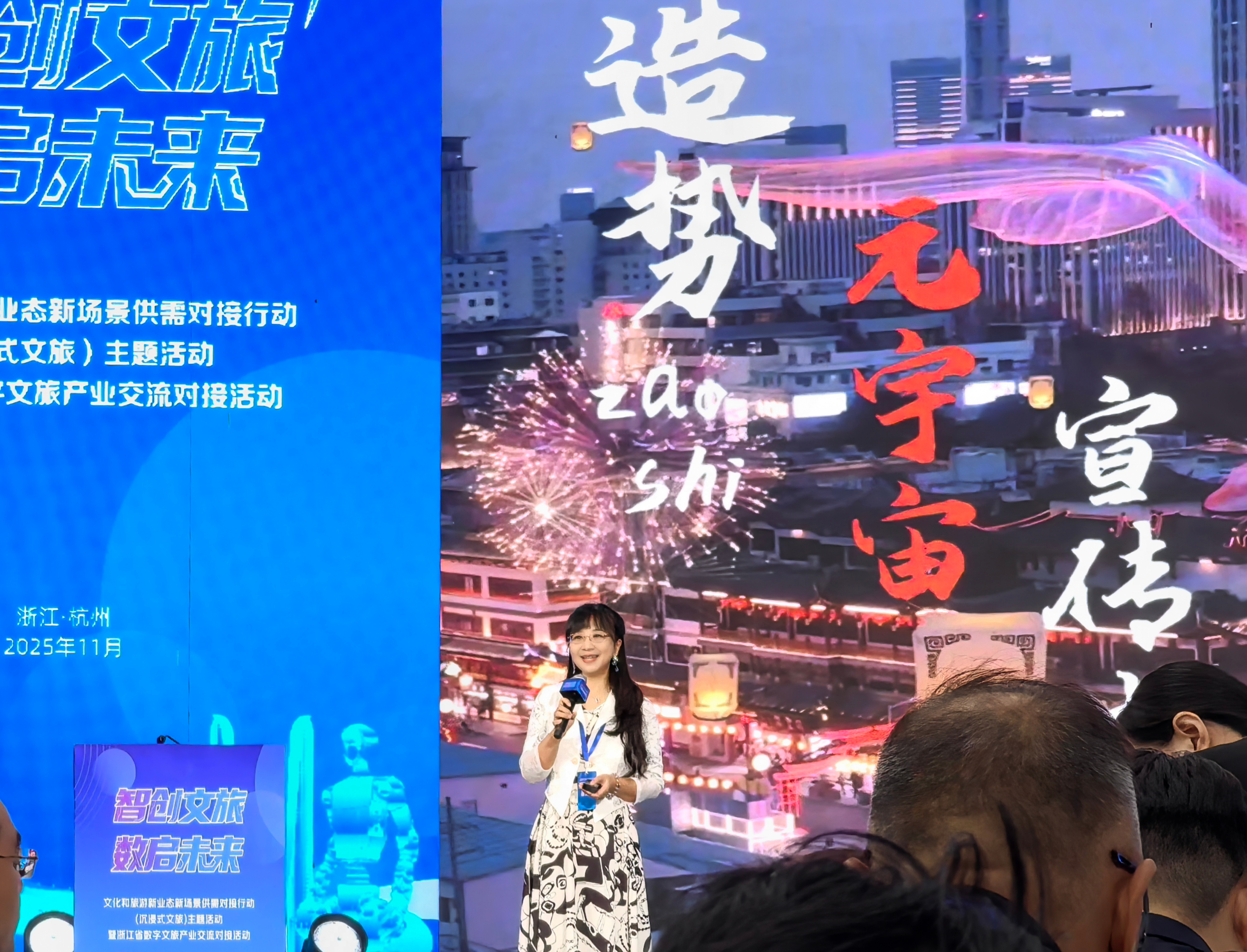 11月13日,由文化和旅游部产业发展司、浙江省文化广电和旅游厅主办,中国文化传媒集团、杭州市文化广电旅游局、杭州市拱墅区人民政府承办的“智创文旅·数启未来”——文化和旅游新业态新场景供需对接行动(沉浸式文旅)主题活动暨浙江省数字文旅产业交流对接活动在杭州成功举办。本次活动是继湖南长沙、宁夏银川之后的第三站,也是该系列首次落地东部地区。文化和旅游部产业发展司一级巡视员周汉萍,浙江省文化广电和旅游厅党组成员、副厅长李新芳等出席活动并致辞。
