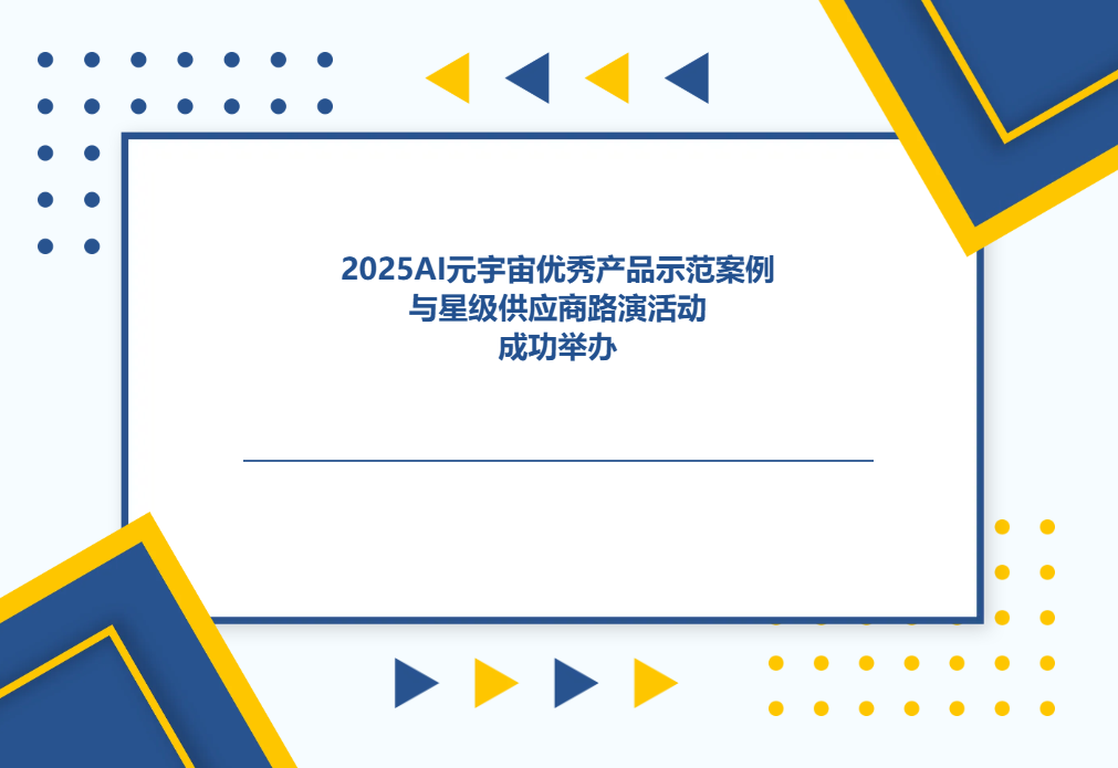 2025年11月10日、14日,2025AI元宇宙优秀产品示范案例与星级供应商线上路演活动成功举办。本次活动由AI元宇宙1000征集与推荐活动组委会和中国文化产业协会文化元宇宙专业委员会主办,北京信息产业协会元宇宙专家委员会、中国广告协会数字元宇宙工作委员会、中国国际科技促进会元宇宙专业委员会、上海数字文创暨元宇宙产业联盟和文创元宇宙(上海)研究院联合主办,旨在搭建优秀元宇宙企业交流展示和对接平台、展现AI元宇宙的最新成果、发挥优秀AI元宇宙产品和案例的示范引领效应。