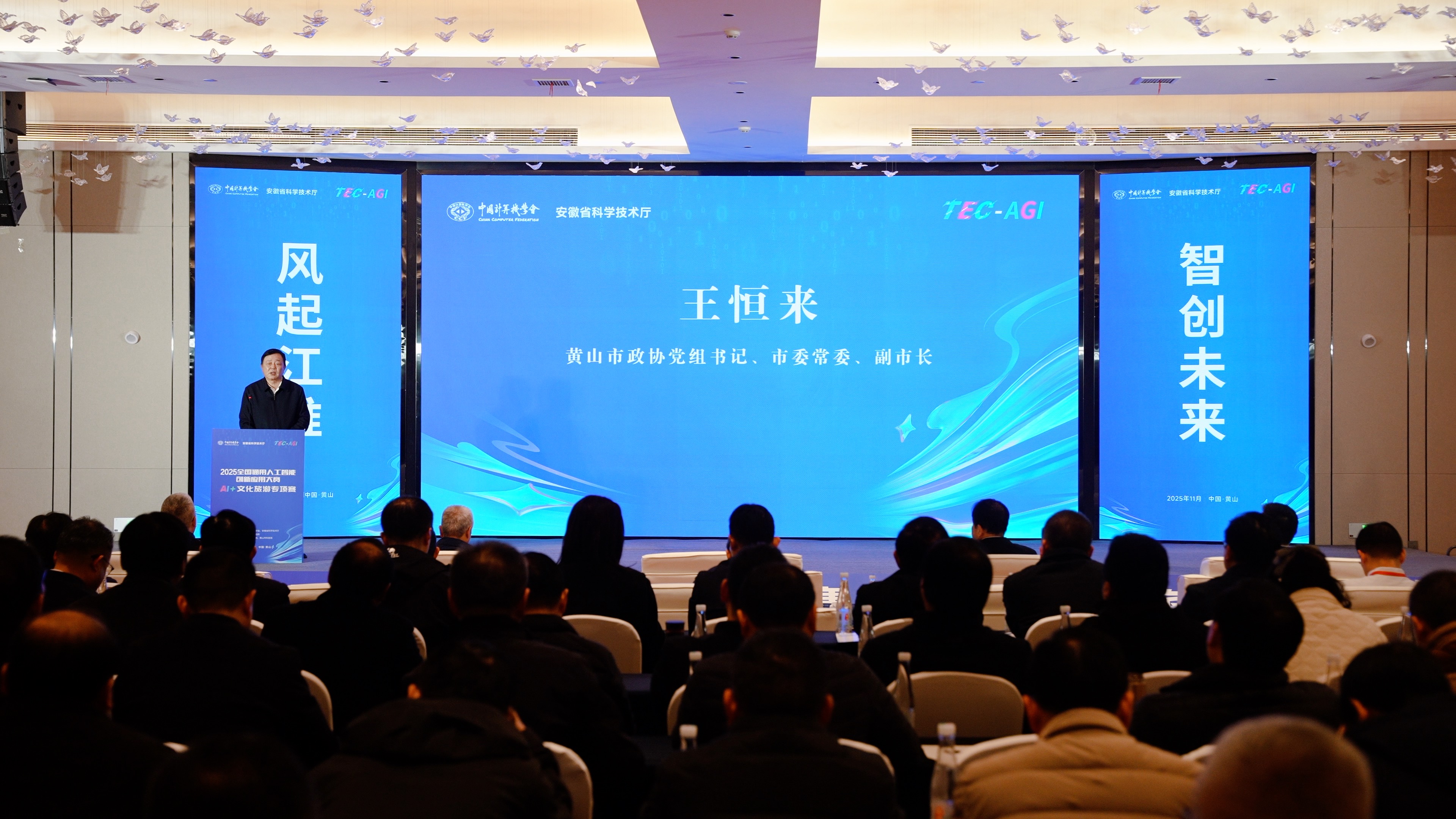 11月28日,2025全国通用人工智能创新应用大赛“AI+文化旅游”专项赛决赛在安徽歙县隆重举办。现场汇集了来自上海、深圳、合肥等地的20个优秀项目团队展开路演比拼。各团队围绕徽州古城、渔梁景区等核心场景,聚焦人工智能在文旅融合、文化保护与消费体验等领域的深度应用,展示AI技术在文旅领域的创新实践,共同角逐全国总决赛入场资格,助力技术从“实验室”走向“应用场”。